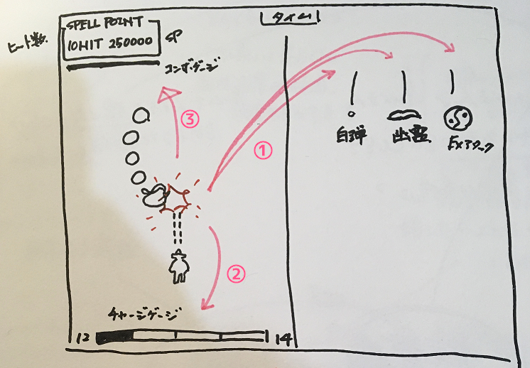 妖精・幽霊・白弾については、スペルポイントを最大効率で回せるほどの実ヒット数を稼ぐのは難しい。よって、実ヒット数を高めるほどその効率も高めることができる。